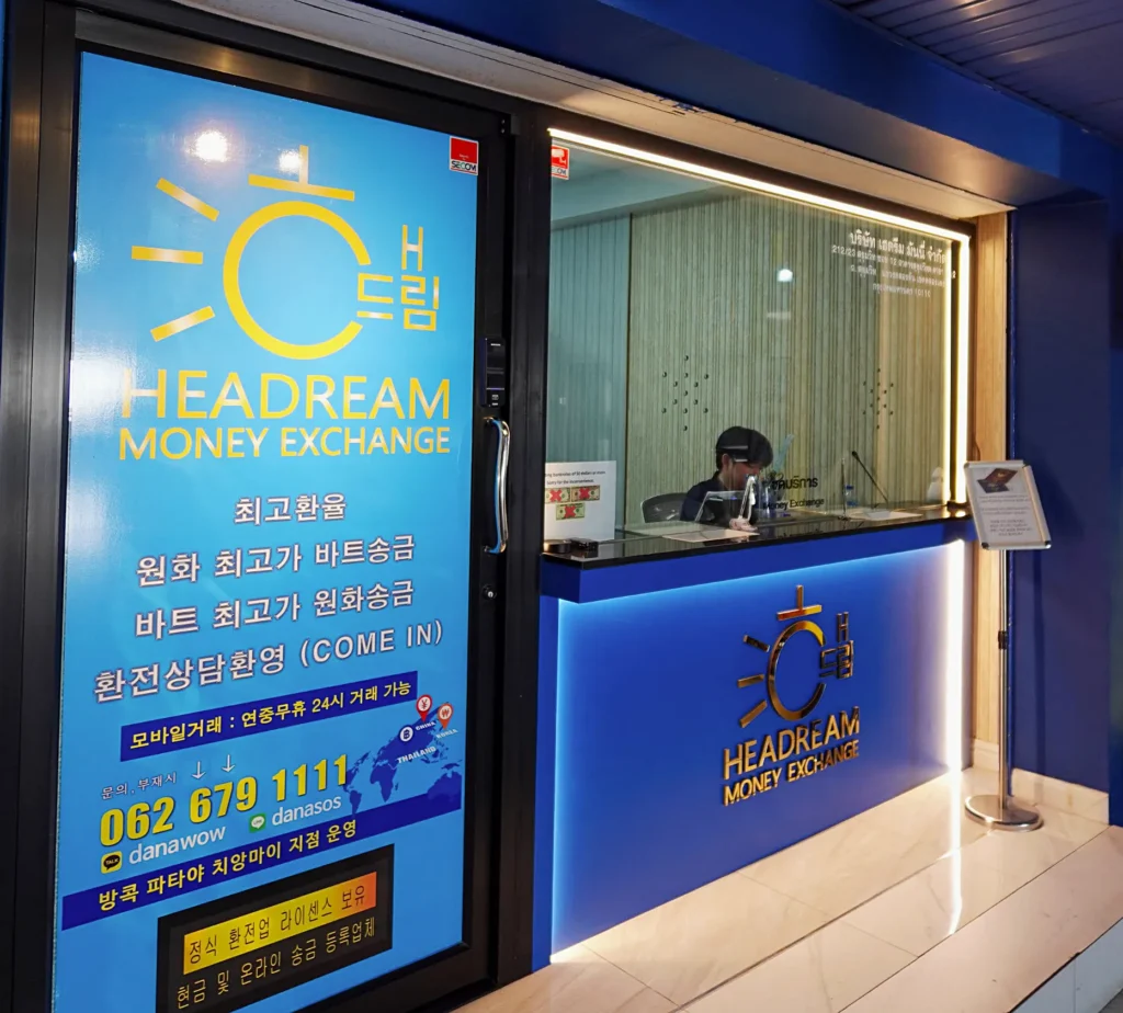 정식 라이센스 보유 업체입니다. 해드림환전소는 태국 정부로부터 정식 환전 허가를 받은 법인 사업체입니다. 모든 거래 시 정식 영수증이 발급되며, 슈퍼리치(SuperRich)·오!리치 파트너사로서 동급의 우대 환율을 적용합니다.